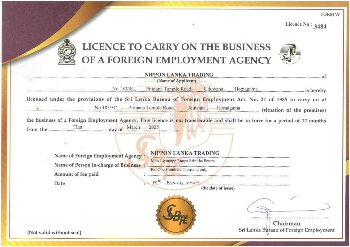 Unlock your potential with Nippon Lanka Trading and global opportunities.